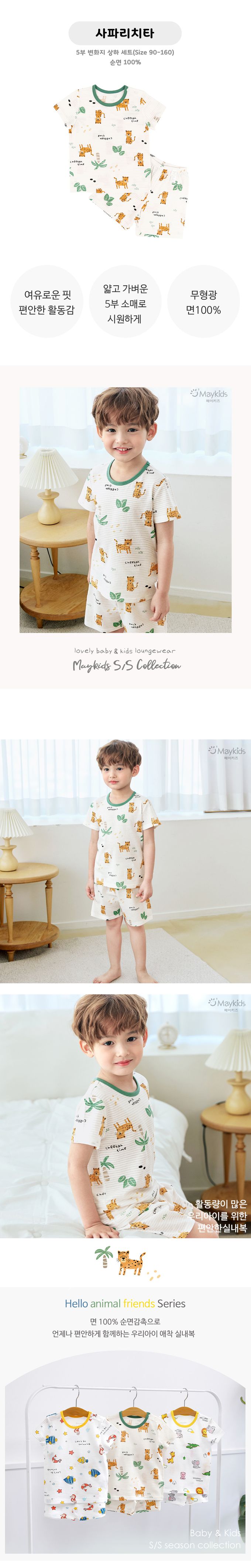 韓國 Maykids - 透氣條紋提花棉短袖家居服-萌萌非洲動物