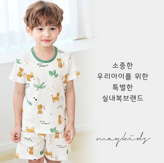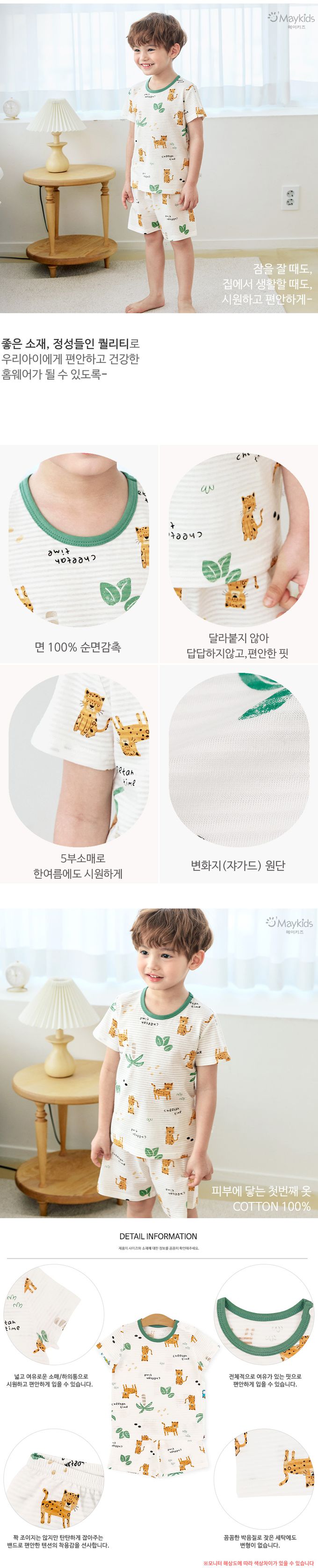 韓國 Maykids - 透氣條紋提花棉短袖家居服-叢林花豹