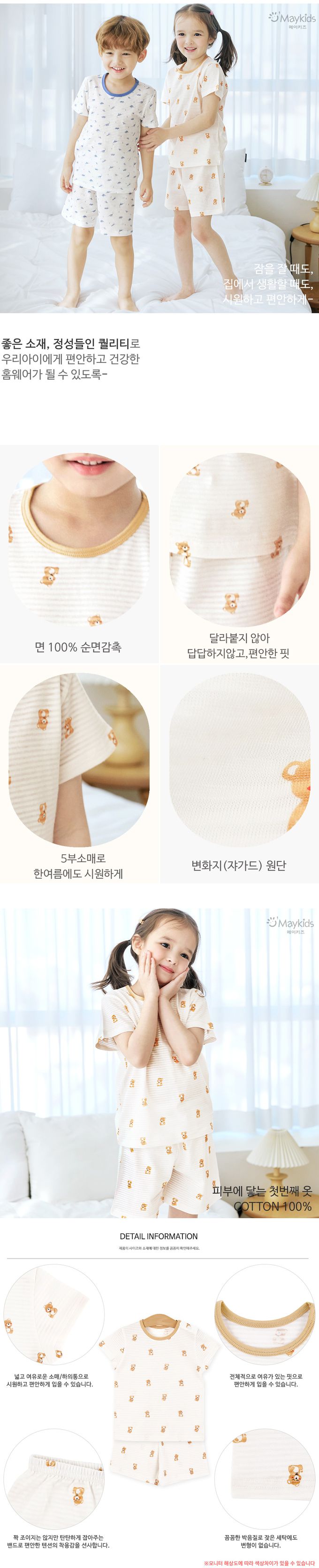韓國 Maykids - 透氣條紋提花棉短袖家居服-玩水熊熊