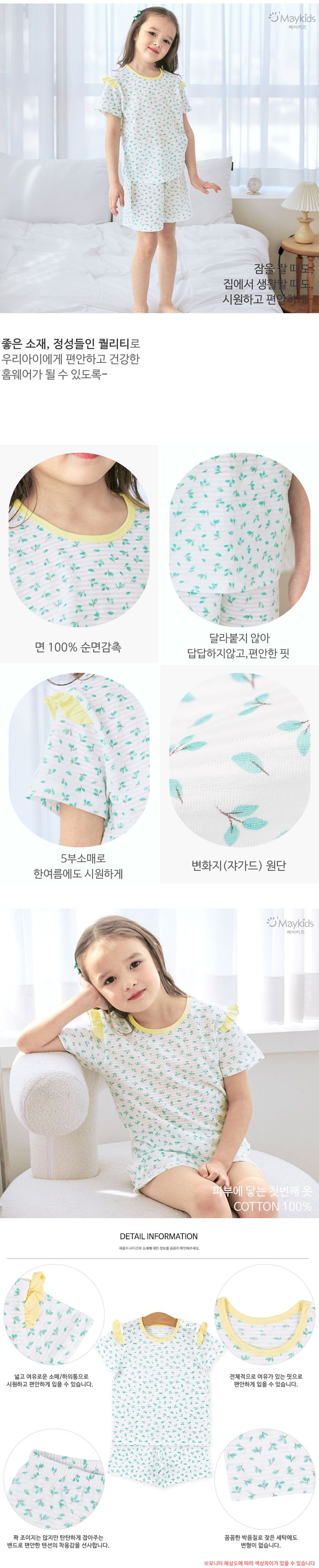 韓國 Maykids - 透氣條紋提花棉短袖家居服-森之絮語