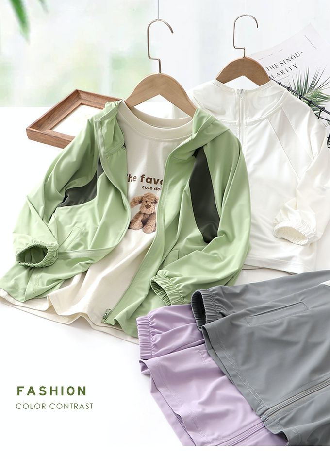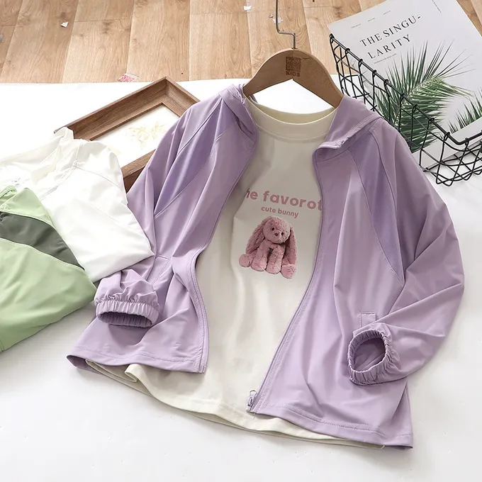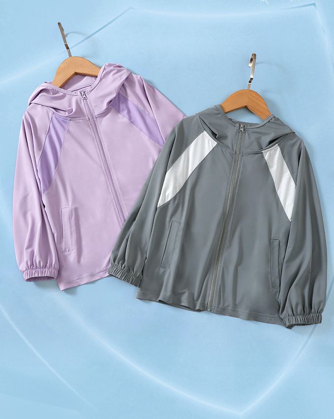 MAMDADKIDS - UPF50+涼感防蚊防曬連帽外套-拼色紫
