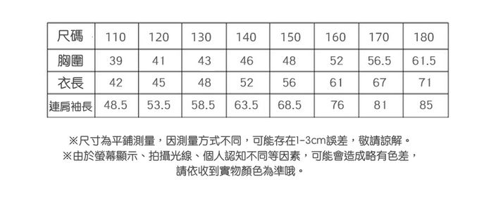 110cm、120cm、130cm、140cm、150cm、160cm、170cm、180cm