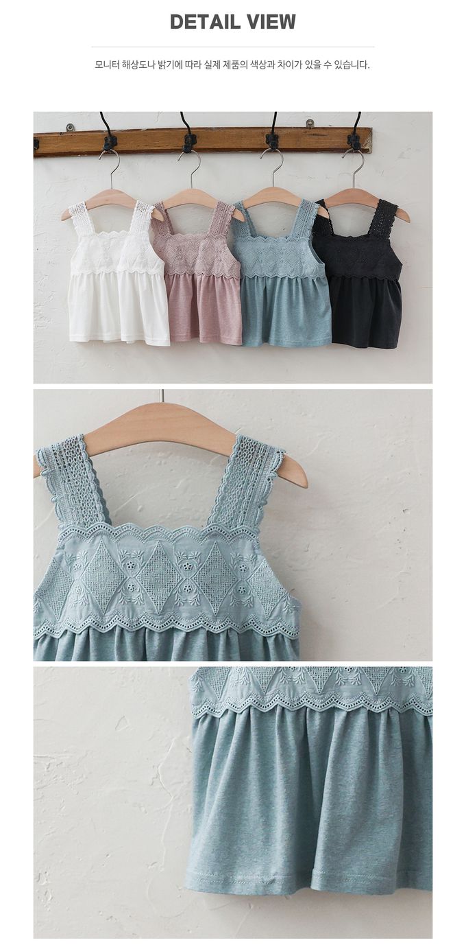 韓國 PuellaFLO - 鏤空蕾絲雕花拼接背心-灰藍