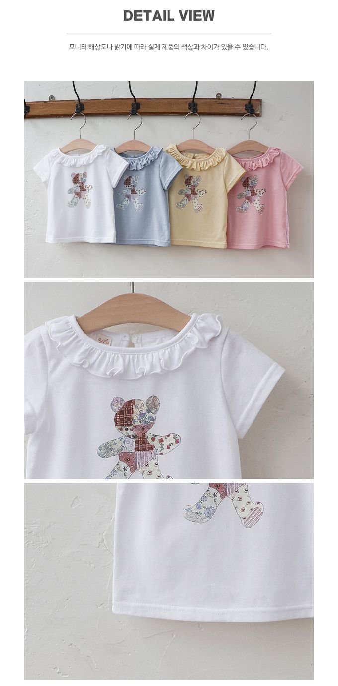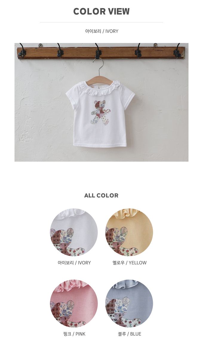 韓國 PuellaFLO - 布偶熊荷葉領點綴短袖上衣-白