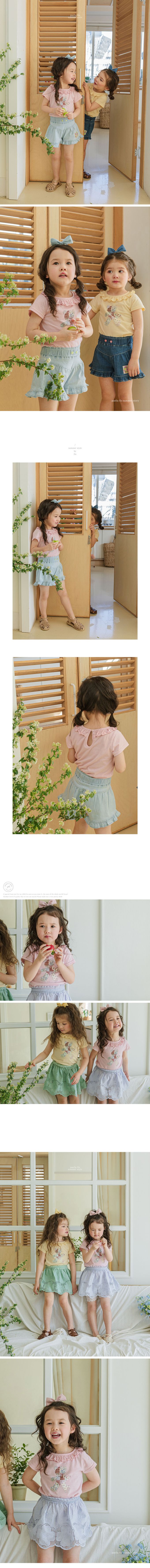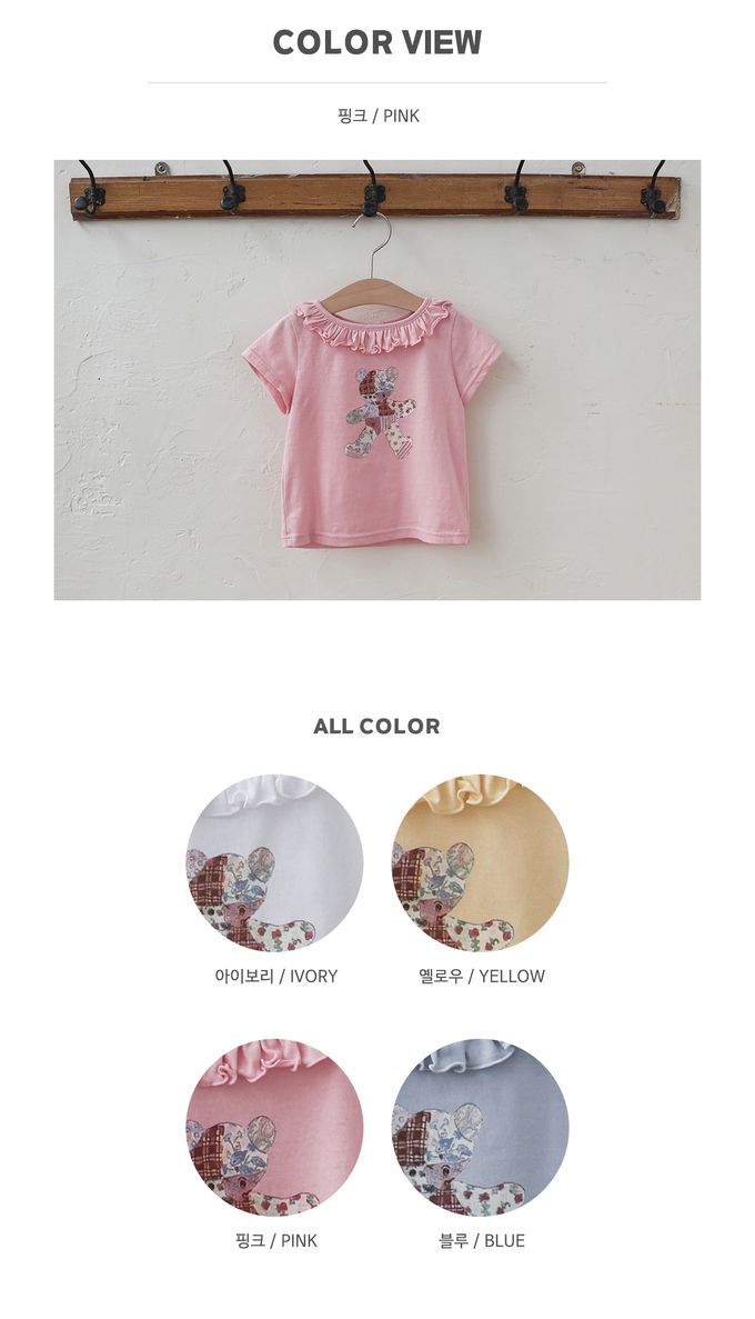 韓國 PuellaFLO - 布偶熊荷葉領點綴短袖上衣-粉
