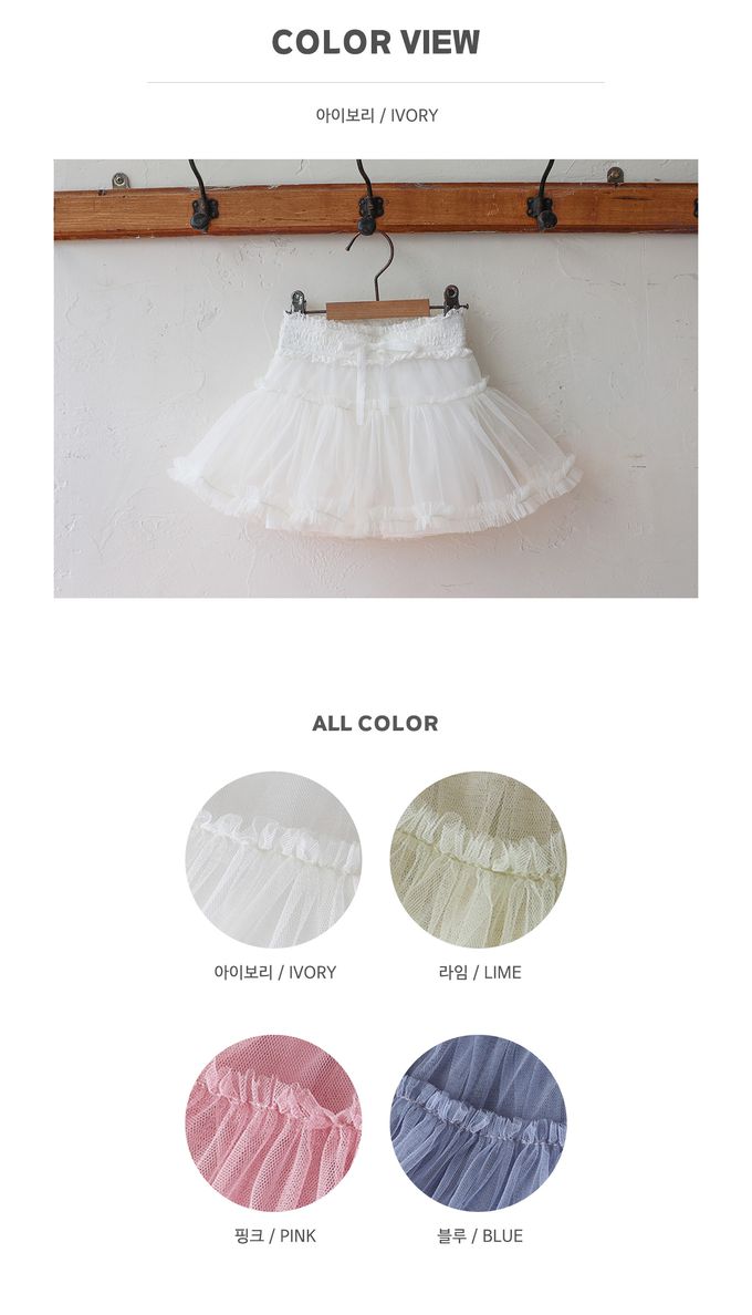 韓國 PuellaFLO - 鬆緊腰飄逸浪漫網紗短內搭褲裙-白