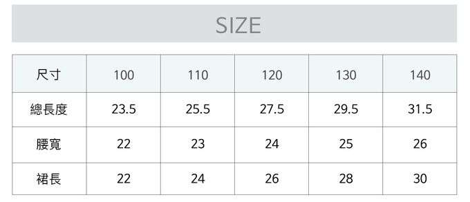 1. 尺寸表單位皆為公分(cm),實際尺寸會因布料彈性、水洗、測量起迄點等因素略有誤差。