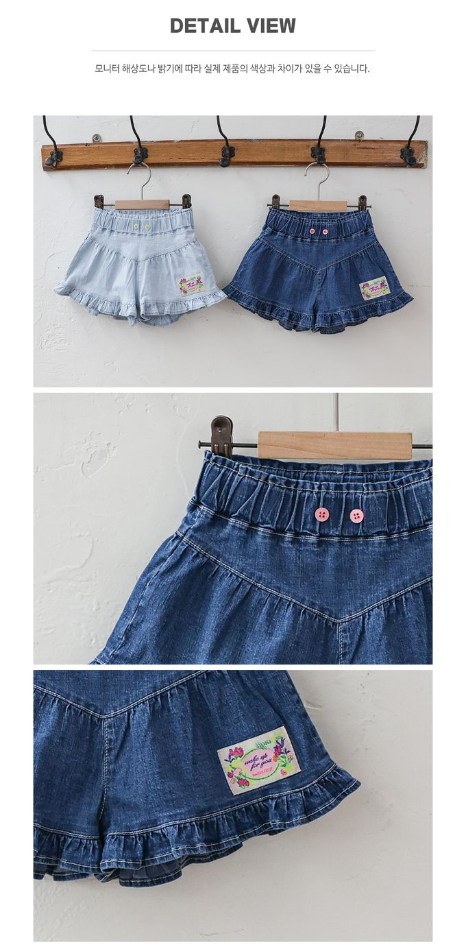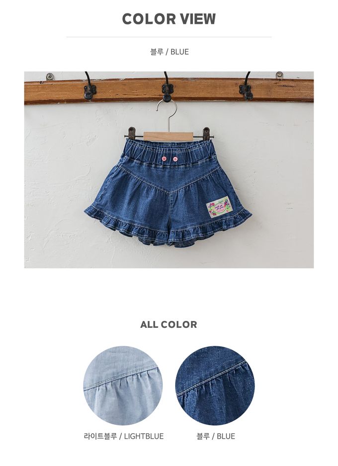 • 品名:鬆緊高腰荷葉邊丹寧短寬褲