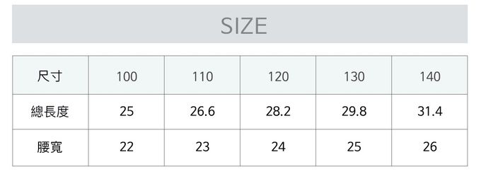 1. 尺寸表單位皆為公分(cm),實際尺寸會因布料彈性、水洗、測量起迄點等因素略有誤差。