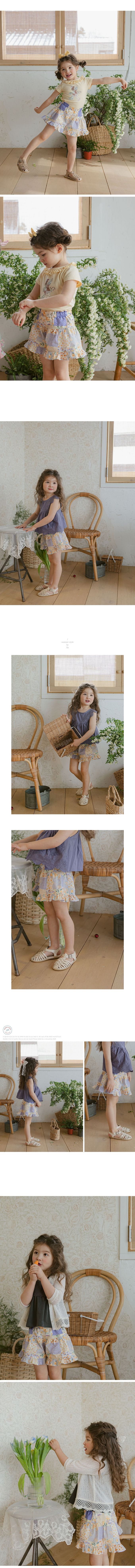 韓國 PuellaFLO - 鬆緊腰海洋金蕊荷葉邊短寬褲-紫