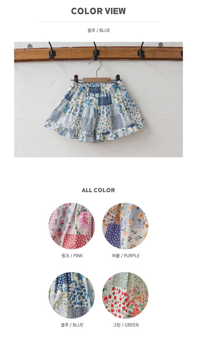 韓國 PuellaFLO - 鬆緊腰藍色夏日荷葉邊短寬褲-藍