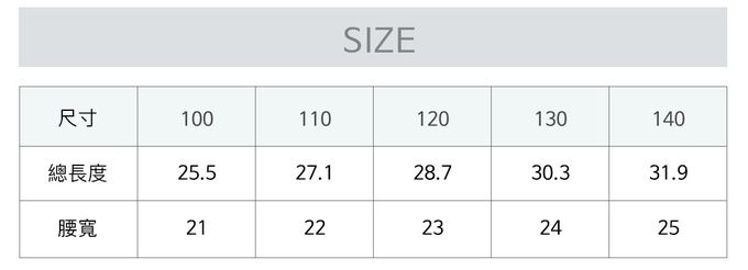1. 尺寸表單位皆為公分(cm),實際尺寸會因布料彈性、水洗、測量起迄點等因素略有誤差。