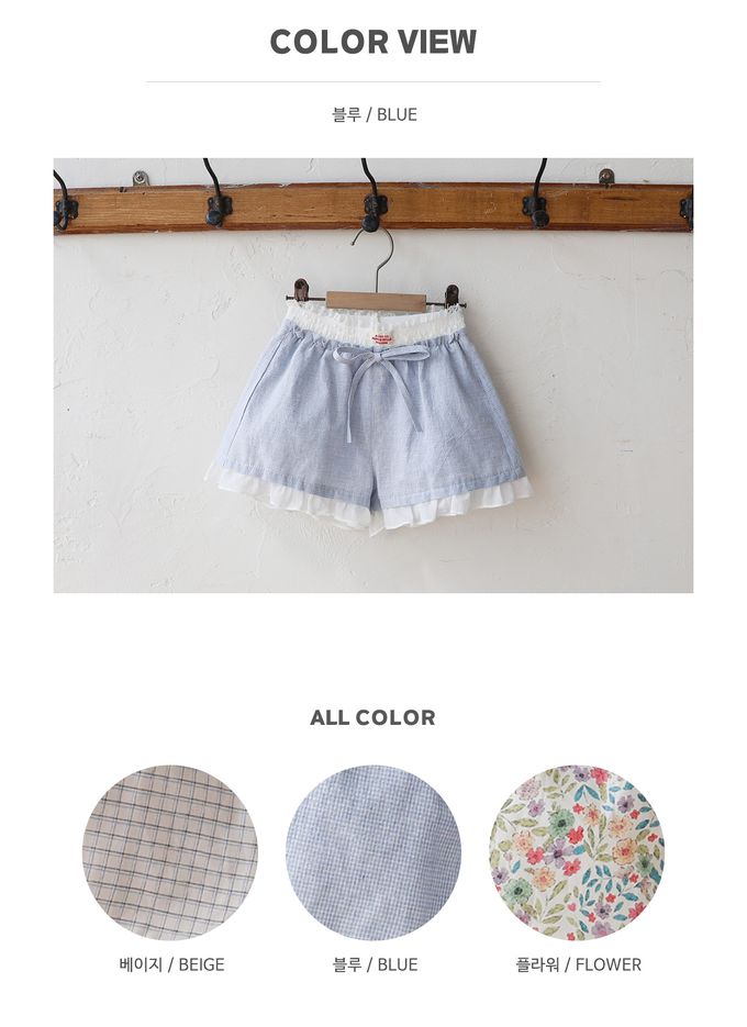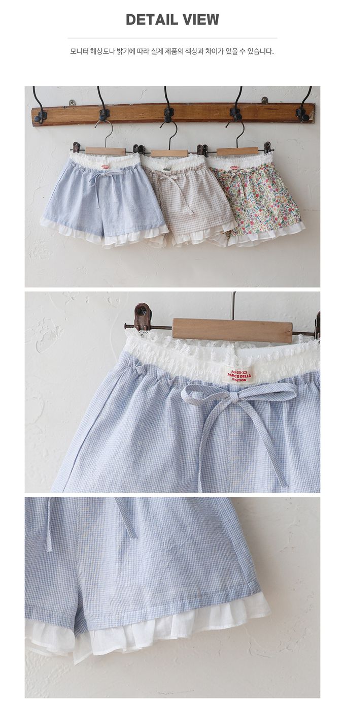 • 品名:鬆緊腰蕾絲拼布裝飾花邊短褲