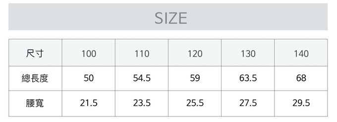 1. 尺寸表單位皆為公分(cm),實際尺寸會因布料彈性、水洗、測量起迄點等因素略有誤差。