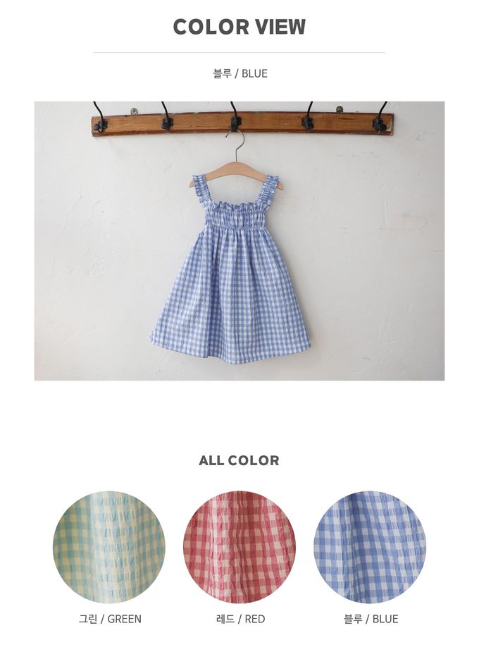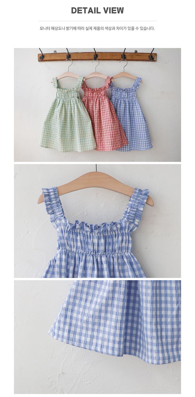 • 品名:田園風格紋抓褶細肩帶洋裝