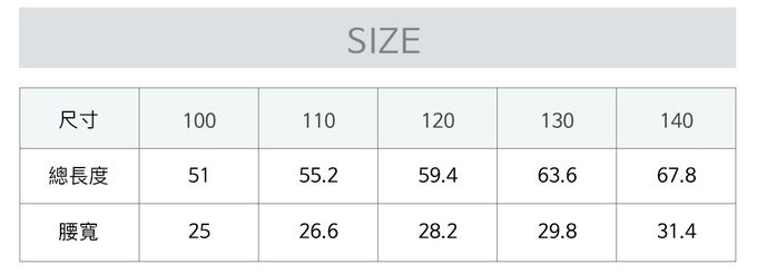1. 尺寸表單位皆為公分(cm),實際尺寸會因布料彈性、水洗、測量起迄點等因素略有誤差。