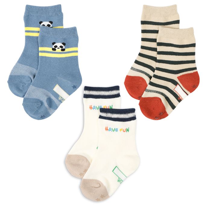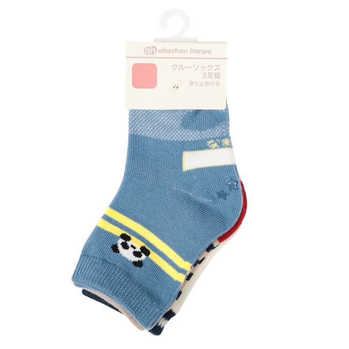 akachan honpo - 中長襪3雙組-熊貓-藍色 (9~14cm)