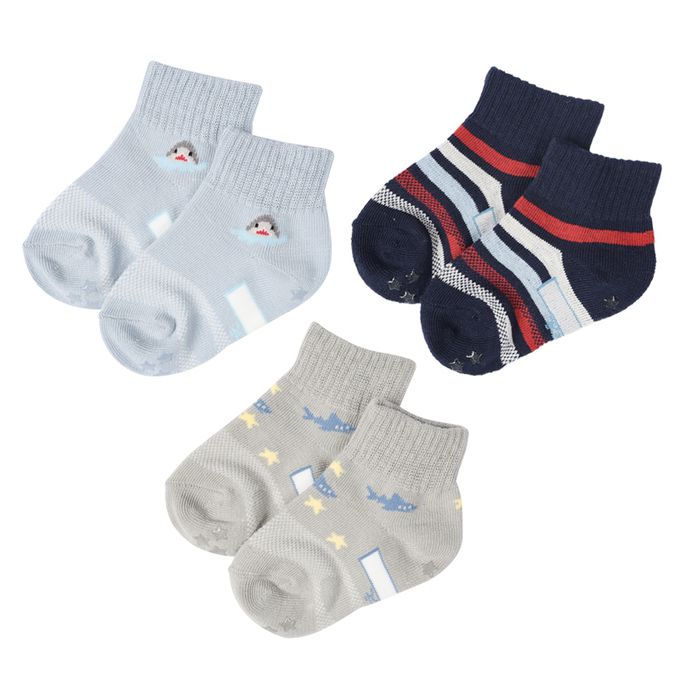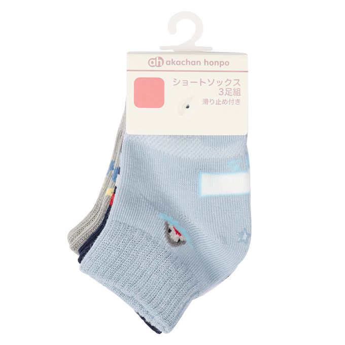 akachan honpo - 短襪3雙組-鯊魚-淺藍色 (9~14cm)