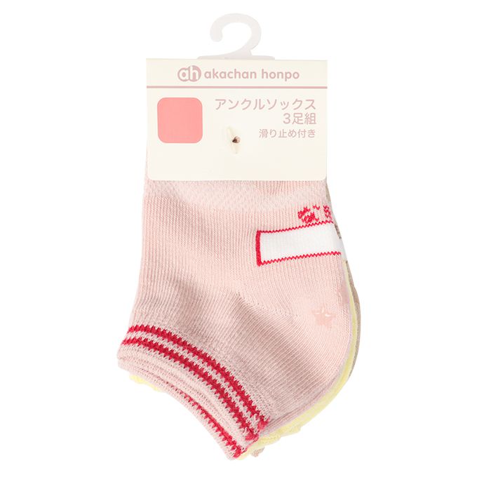 akachan honpo - 踝襪3雙組-小貓・兔子-粉紅色