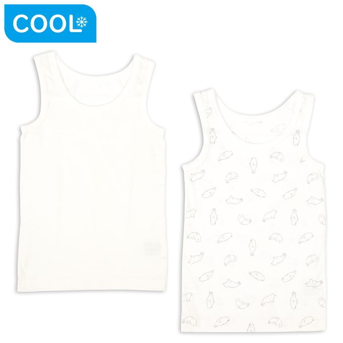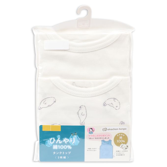 akachan honpo - 坦克背心2件組涼爽純棉-海豹-米白色