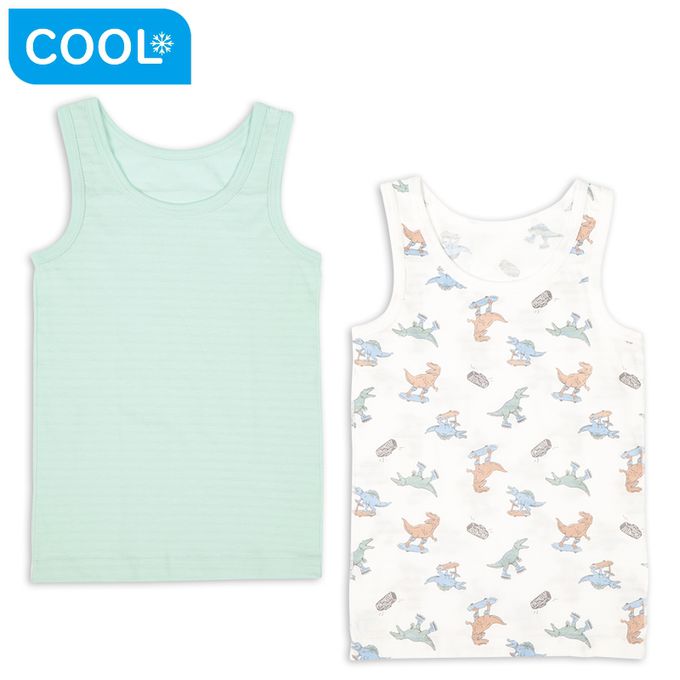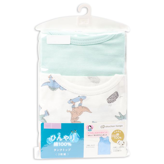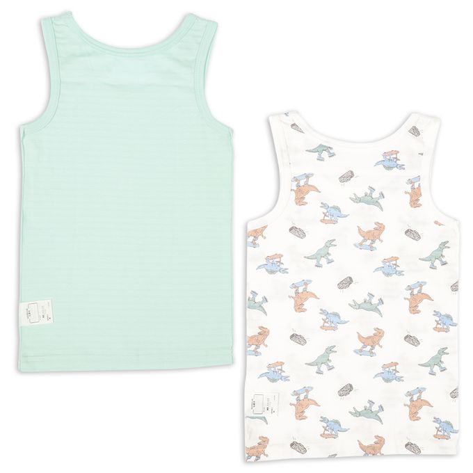 akachan honpo - 坦克背心2件組涼爽純棉-恐龍-綠色