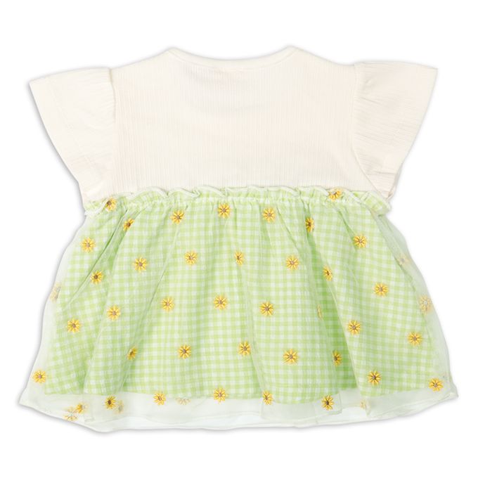 短袖T恤-薄紗拼接-綠色
