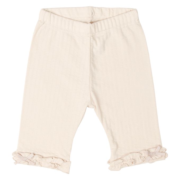 5分內搭褲-褲腳荷葉邊-淺卡其色