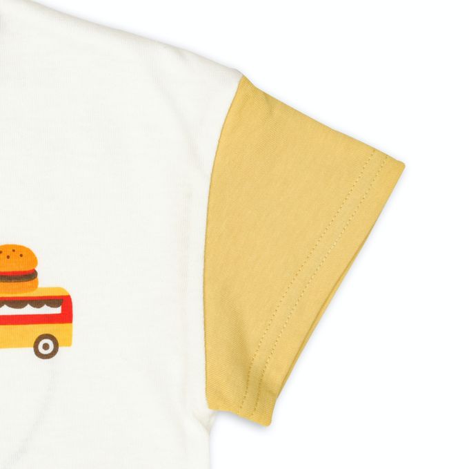 胸口有載著冰淇淋和漢堡的車子印花