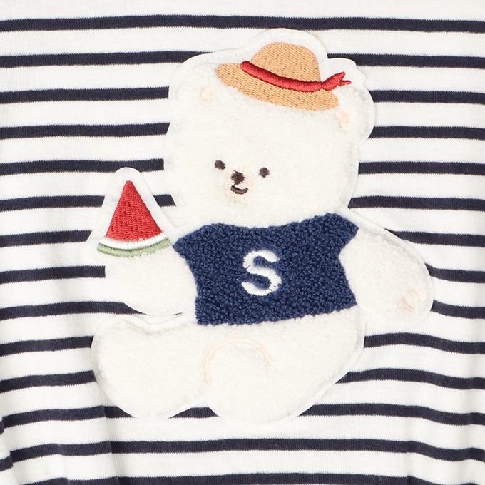 akachan honpo - 短袖外出包屁衣-凸毛繡布貼-深藍色