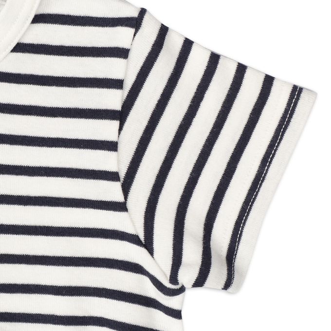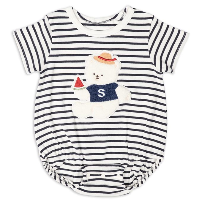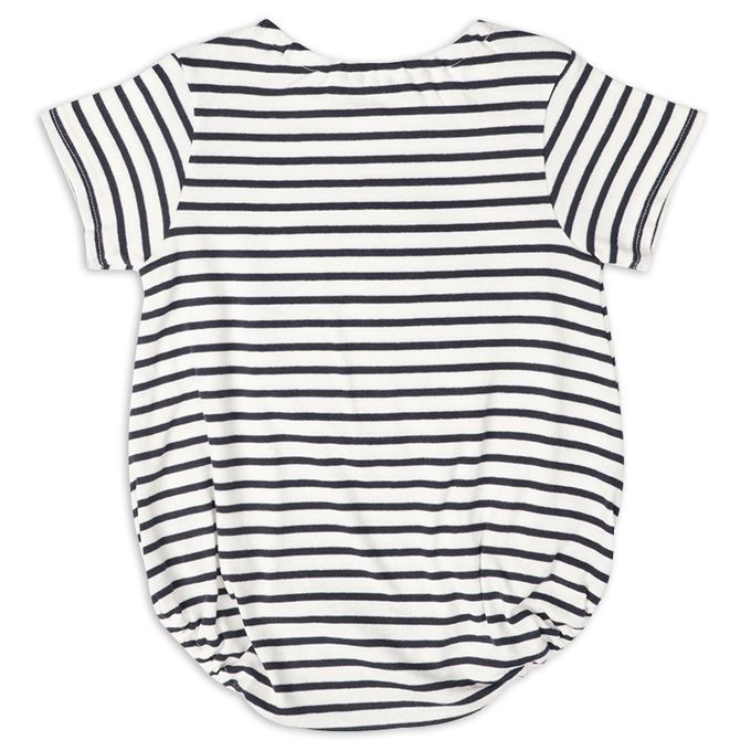 akachan honpo - 短袖外出包屁衣-橫紋-深藍色