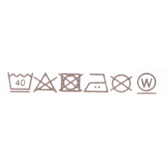注意事項:●標示內容遵照台灣法規之規定。●請勿熨燙釦子部分。●請使用不含螢光增白劑的洗劑。