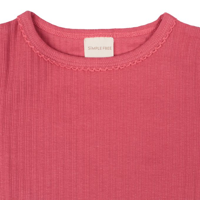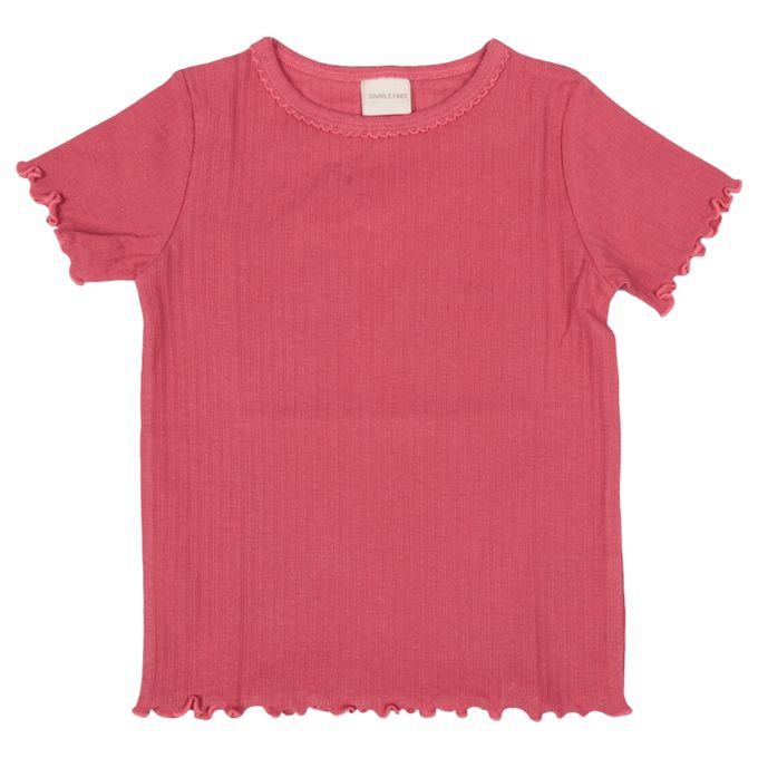 akachan honpo - 短袖經典T恤-羅紋抽針針織布-粉紅色