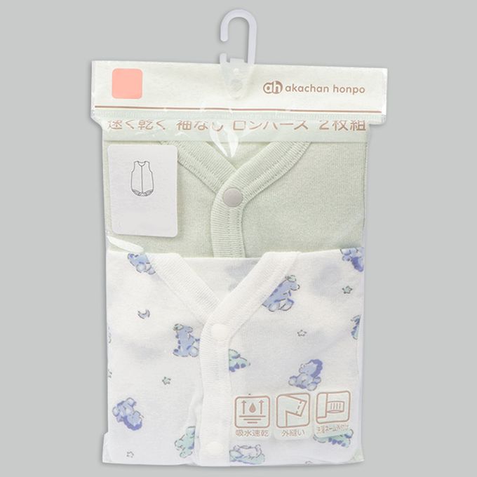 akachan honpo - 無袖速乾包屁衣2件組前開式-恐龍-綠色
