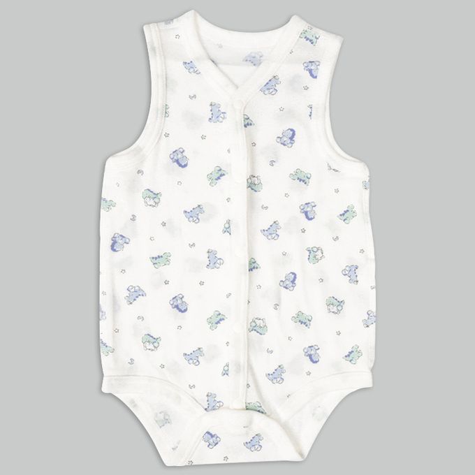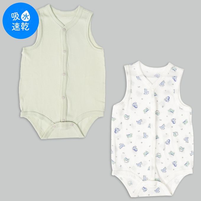 無袖速乾包屁衣2件組前開式-恐龍-綠色