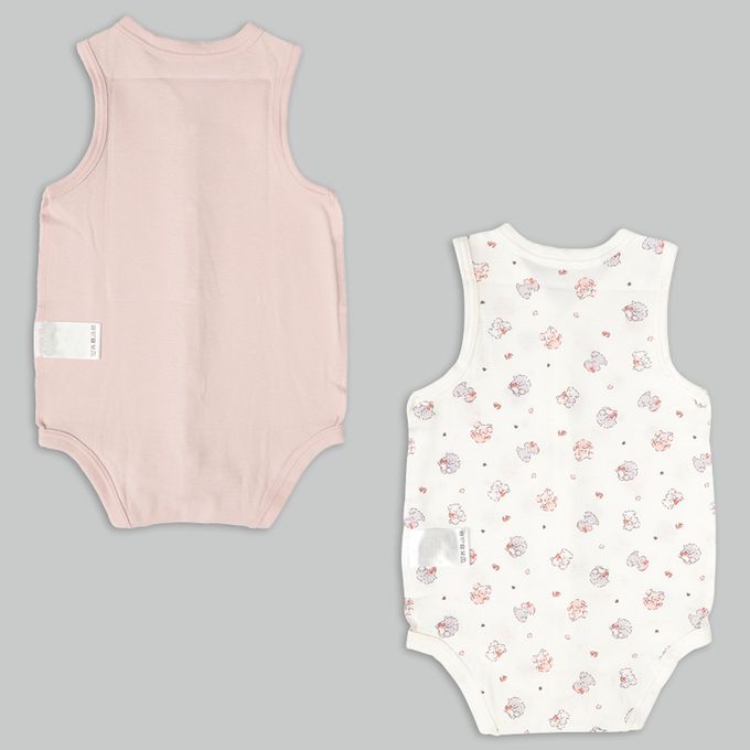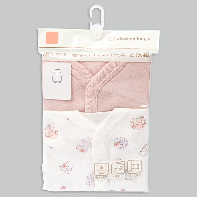 akachan honpo - 無袖速乾包屁衣2件組前開式-動物-粉紅色