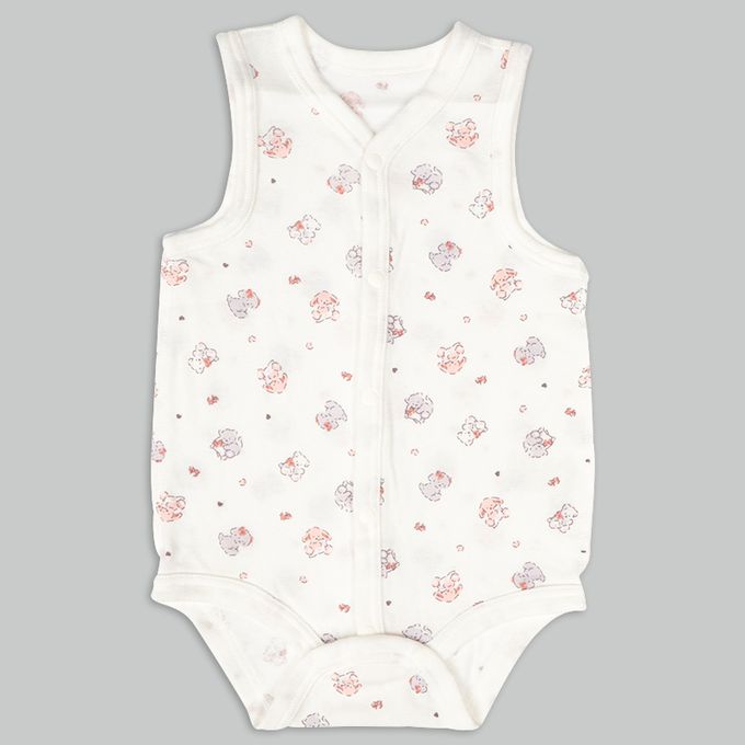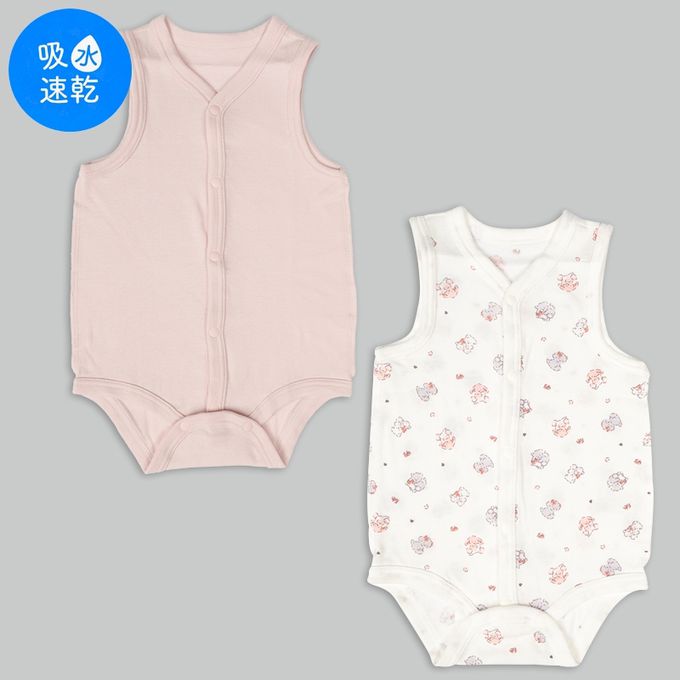 無袖速乾包屁衣2件組前開式-動物-粉紅色