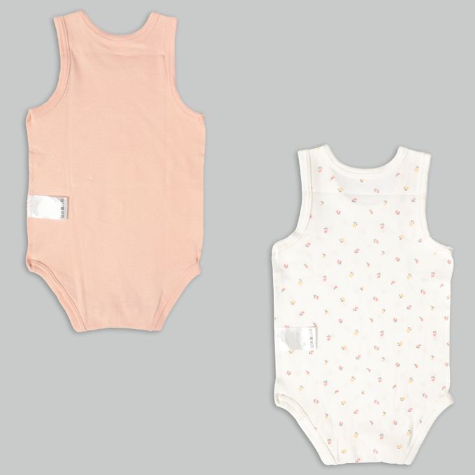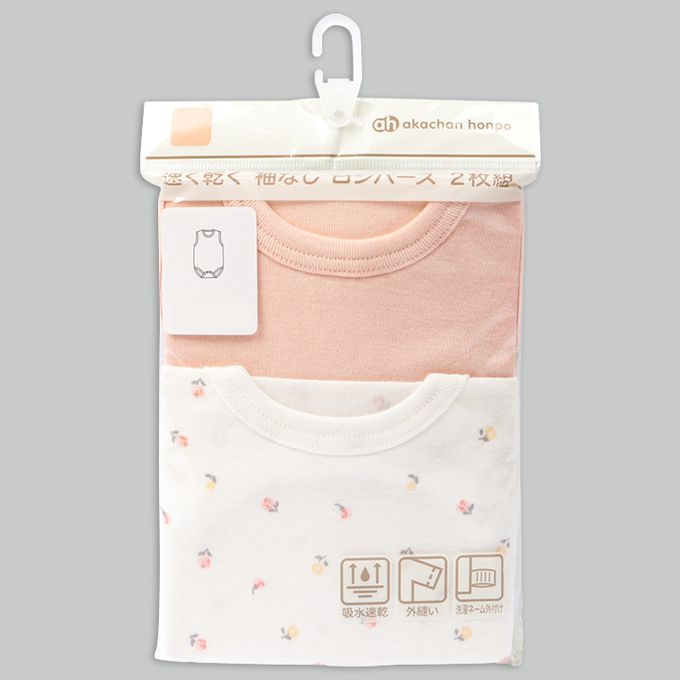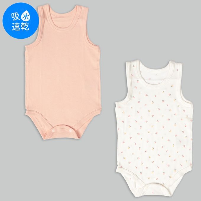 akachan honpo - 無袖速乾包屁衣2件組套頭式-小花-粉紅色