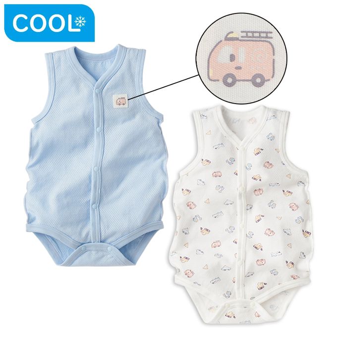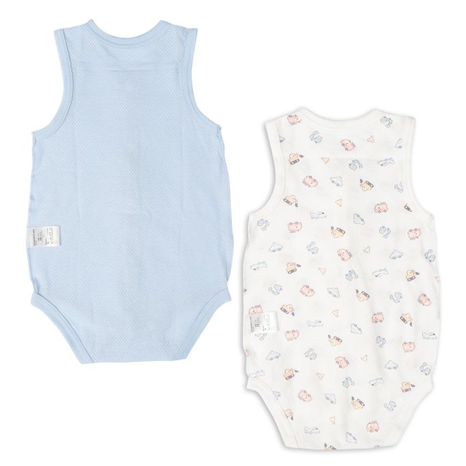無袖網眼包屁衣2件組前開式-交通工具-淺藍色