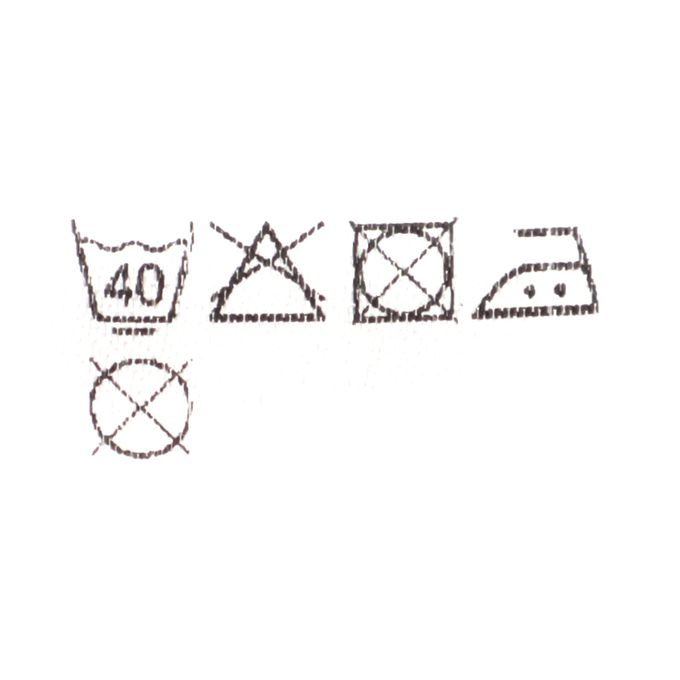 注意事項:●標示內容遵照台灣法規之規定。●請使用不含螢光增白劑的洗劑。●請勿熨燙釦子部分。●熨燙請使用墊布。