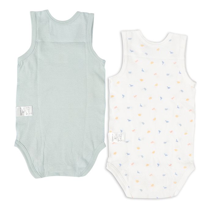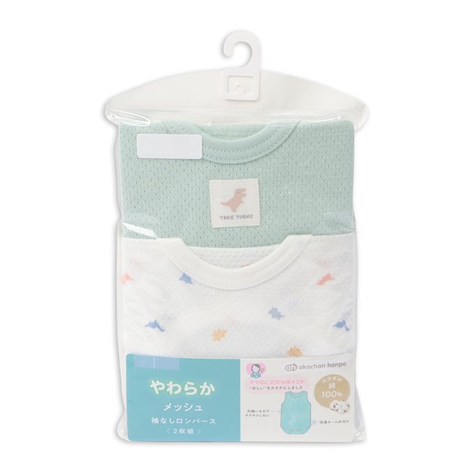 akachan honpo - 無袖網眼包屁衣2件組套頭式-綠色