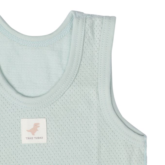 無袖網眼包屁衣2件組套頭式-綠色