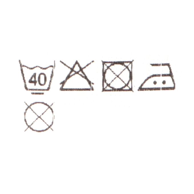 注意事項:●標示內容遵照台灣法規之規定。●請使用不含螢光增白劑的洗劑。●請勿熨燙釦子部分。●熨燙請使用墊布。