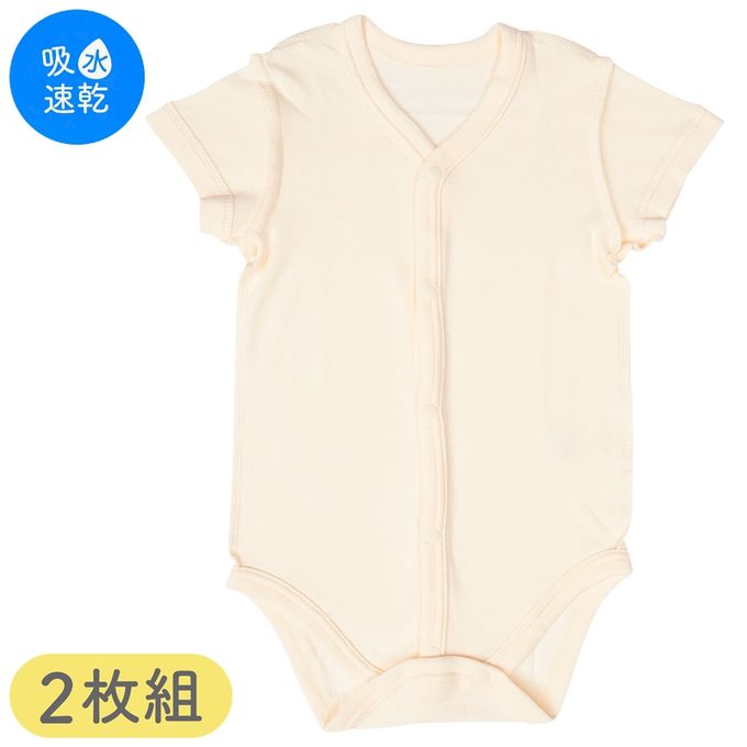 短袖速乾包屁衣2件組前開式-素面-象牙白色