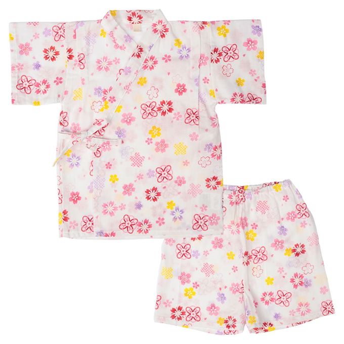 akachan honpo - 兩件式甚平-櫻花-米白色
