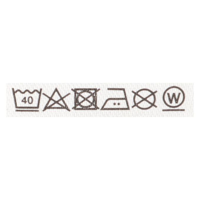 注意事項:●標示內容遵照台灣法規之規定。●請勿熨燙釦子部分。●請使用不含螢光增白劑的洗劑。