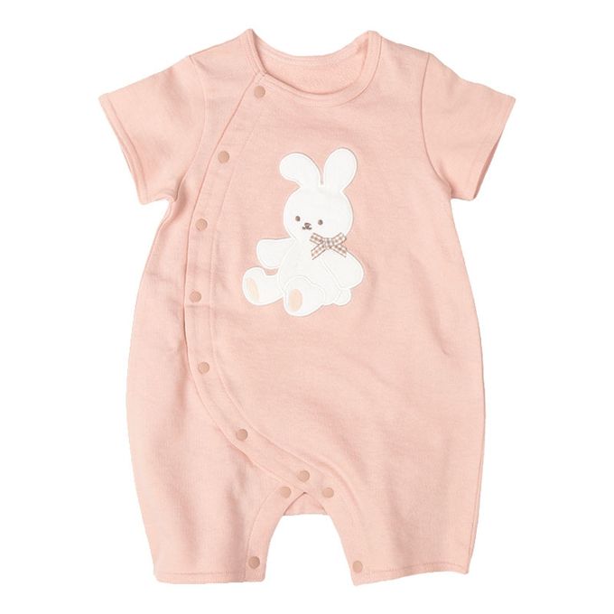 短袖兔裝-毛巾布材質造型圖案-粉紅色