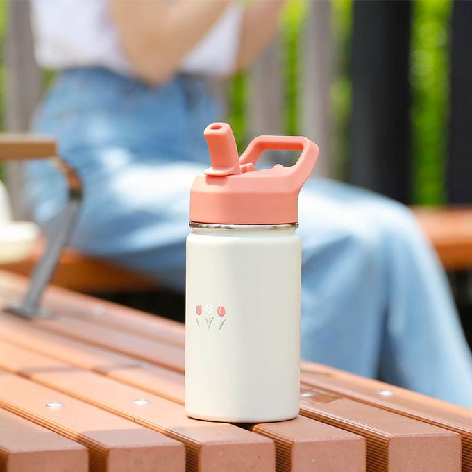 兒童吸管水壺-鬱金香-玫瑰紅色-380ML