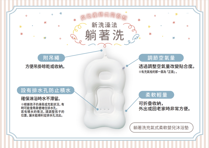在浴室或房間輕鬆護理,可用於浴室淋浴、洗手台沐浴、房間內換尿布或換衣服。