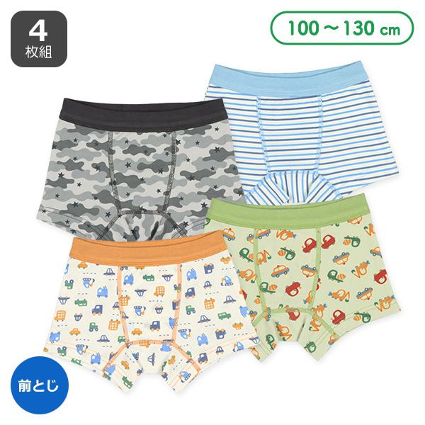 日本西松屋 - 混棉男孩四角內褲(4件組)-車車迷彩條紋
