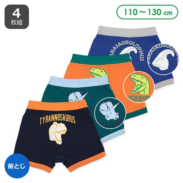 日本西松屋 - 混棉男孩四角內褲(4件組)-恐龍-黑綠橘藍